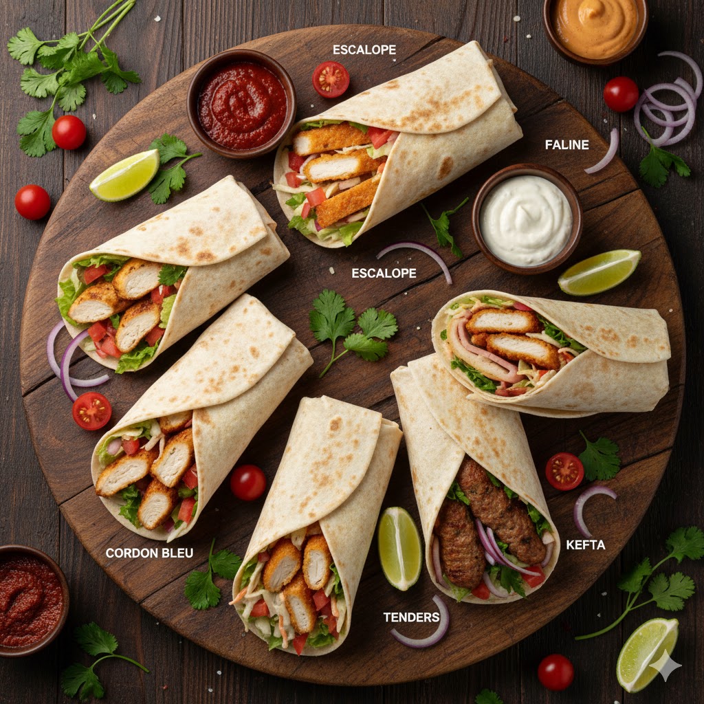 Viande au choix : Chicken, Escalope, Cordon Bleu, Tenders, Kefta.